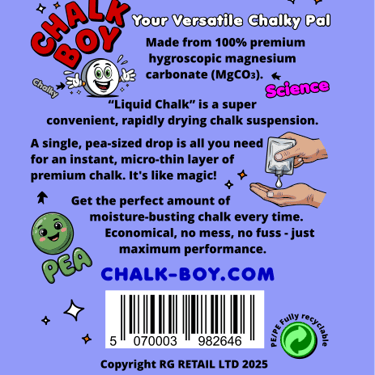 “Liquid Chalk” is a super convenient, rapidly drying gym chalk suspension. A single,drop is all you need for an instant, micro-thin layer of premium chalk.